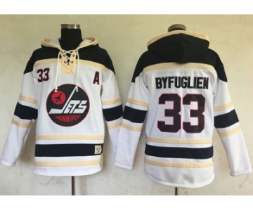 Men's Winnipeg Jets #33 Dustin Byfuglien White Sawyer Hooded Sweatshirt Stitched NHL Jersey