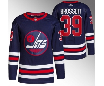 Men's Winnipeg Jets #39 Laurent Brossoit 2021-22 Navy Stitched Jersey