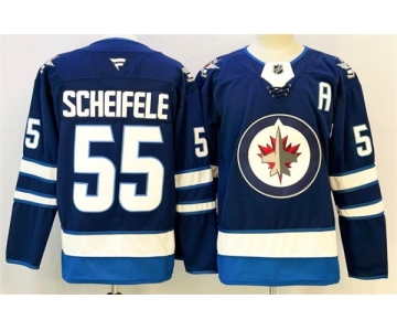Men's Winnipeg Jets #55 Mark Scheifele Navy 2024-25 With A Patch Home Stitched Hockey Jersey