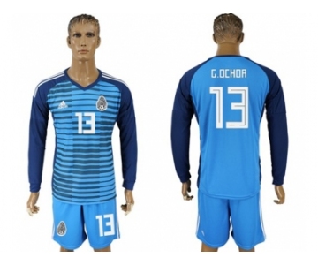 Mexico #13 G.Ochoa Blue Long Sleeves Goalkeeper Soccer Country Jersey
