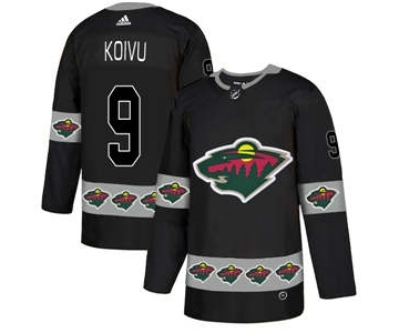 Minnesota Wild #9 Mikko Koivu Black Team Logos Fashion Jersey