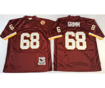 Mitchell and Ness Washington Redskins #68 Russ Grimm Red With 50TH Patch Authentic Throwback Football Jersey