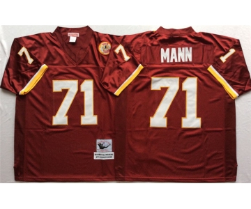 Mitchell and Ness Washington Redskins #71 Charles Mann Red With 50TH Patch Authentic Throwback Football Jersey