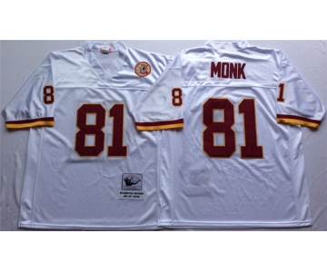 Mitchell and Ness Washington Redskins #81 Art Monk White With 50TH Patch Authentic Throwback Football Jersey