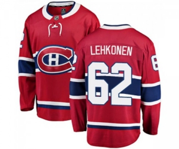 Montreal Canadiens #62 Artturi Lehkonen Authentic Red Home Fanatics Branded Breakaway NHL Jersey