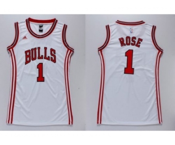 NBA Women Bulls #1 Derrick Rose White Dress Stitched Jerseys