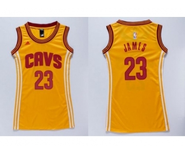 NBA Women Cavaliers #23 LeBron James Gold Dress Stitched Jerseys