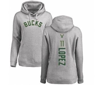 NBA Women's Nike Milwaukee Bucks #11 Brook Lopez Ash Backer Pullover Hoodie