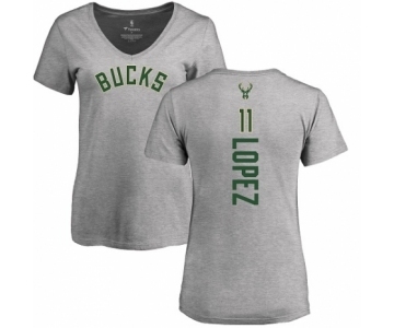 NBA Women's Nike Milwaukee Bucks #11 Brook Lopez Ash Backer T-Shirt