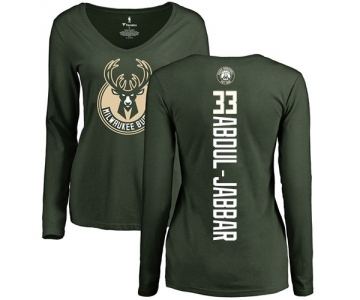 NBA Women's Nike Milwaukee Bucks #33 Kareem Abdul-Jabbar Green Backer Long Sleeve T-Shirt