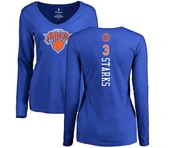 NBA Women's Nike New York Knicks #3 John Starks Royal Blue Backer Long Sleeve T-Shirt