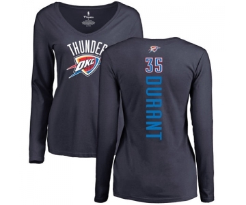 NBA Women's Nike Oklahoma City Thunder #35 Kevin Durant Navy Blue Backer Long Sleeve T-Shirt