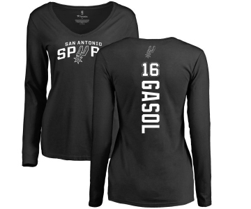 NBA Women's Nike San Antonio Spurs #16 Pau Gasol Black Backer Long Sleeve T-Shirt