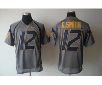 NCAA West Virginia Mountaineers Geno Smith 12 Grey College Football Jersey