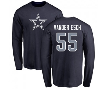 NFL Nike Dallas Cowboys #55 Leighton Vander Esch Navy Blue Name & Number Logo Long Sleeve T-Shirt