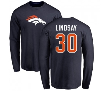 NFL Nike Denver Broncos #30 Phillip Lindsay Navy Blue Name & Number Logo Long Sleeve T-Shirt