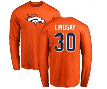 NFL Nike Denver Broncos #30 Phillip Lindsay Orange Name & Number Logo Long Sleeve T-Shirt