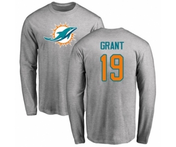 NFL Nike Miami Dolphins #19 Jakeem Grant Ash Name & Number Logo Long Sleeve T-Shirt
