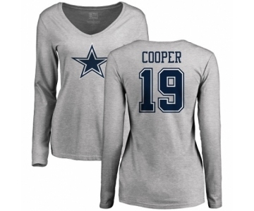NFL Women's Nike Dallas Cowboys #19 Amari Cooper Ash Name & Number Logo Slim Fit Long Sleeve T-Shirt