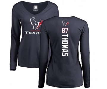 NFL Women's Nike Houston Texans #87 Demaryius Thomas Navy Blue Backer Long Sleeve T-Shirt