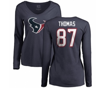 NFL Women's Nike Houston Texans #87 Demaryius Thomas Navy Blue Name & Number Logo Long Sleeve T-Shirt