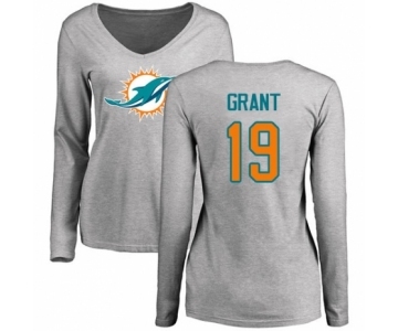 NFL Women's Nike Miami Dolphins #19 Jakeem Grant Ash Name & Number Logo Long Sleeve T-Shirt