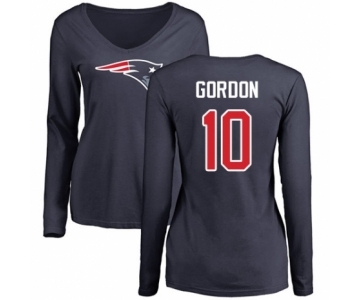 NFL Women's Nike New England Patriots #10 Josh Gordon Navy Blue Name & Number Logo Slim Fit Long Sleeve T-Shirt