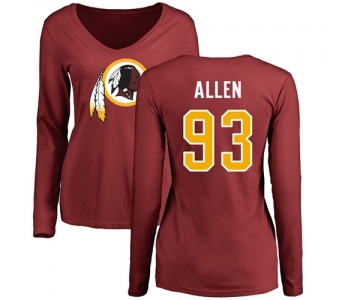 NFL Women's Nike Washington Redskins #93 Jonathan Allen Maroon Name & Number Logo Long Sleeve T-Shirt
