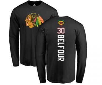 NHL Adidas Chicago Blackhawks #30 ED Belfour Black Backer Long Sleeve T-Shirt