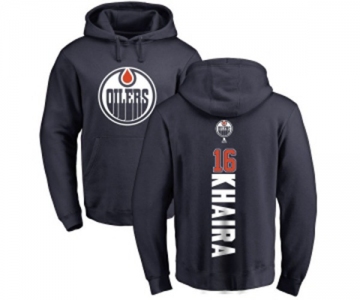NHL Adidas Edmonton Oilers #16 Jujhar Khaira Navy Blue Backer Pullover Hoodie