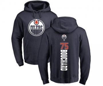 NHL Adidas Edmonton Oilers #75 Evan Bouchard Navy Blue Backer Pullover Hoodie