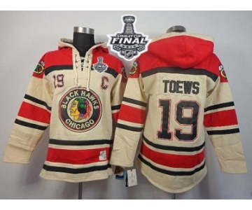 NHL Chicago Blackhawks #19 Jonathan Toews Cream Sawyer Hooded Sweatshirt 2015 Stanley Cup Stitched Jerseys