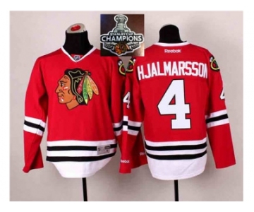 NHL Chicago Blackhawks #4 Niklas Hjalmarsson Red 2014 Stadium Series 2015 Stanley Cup Champions jerseys