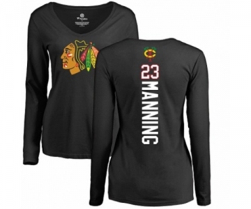 NHL Women Adidas Chicago Blackhawks #23 Brandon Manning Black Backer Long Sleeve T-Shirt