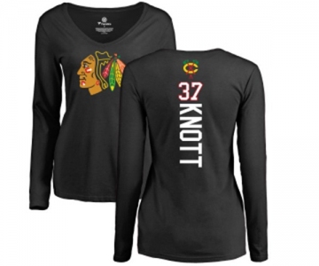 NHL Women Adidas Chicago Blackhawks #37 Graham Knott Black Backer Long Sleeve T-Shirt