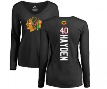 NHL Women Adidas Chicago Blackhawks #40 John Hayden Black Backer Long Sleeve T-Shirt