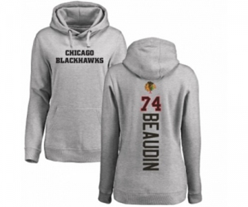 NHL Women Adidas Chicago Blackhawks #74 Nicolas Beaudin Ash Backer Pullover Hoodie
