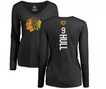 NHL Women Adidas Chicago Blackhawks #9 Bobby Hull Black Backer Long Sleeve T-Shirt