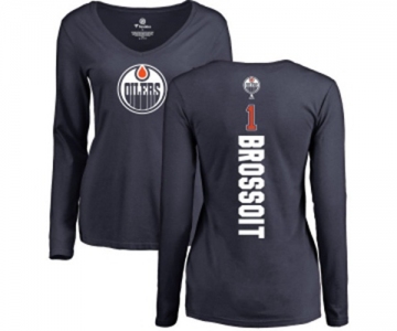 NHL Women Adidas Edmonton Oilers #1 Laurent Brossoit Navy Blue Backer Slim Fit Long Sleeve T-Shirt