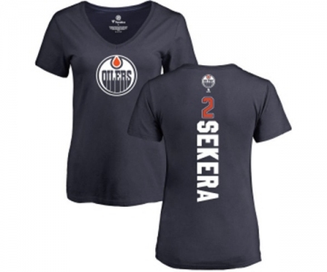 NHL Women Adidas Edmonton Oilers #2 Andrej Sekera Navy Blue Backer Slim Fit V-Neck T-Shirt
