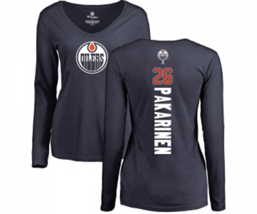 NHL Women Adidas Edmonton Oilers #26 Iiro Pakarinen Navy Blue Backer Slim Fit Long Sleeve T-Shirt