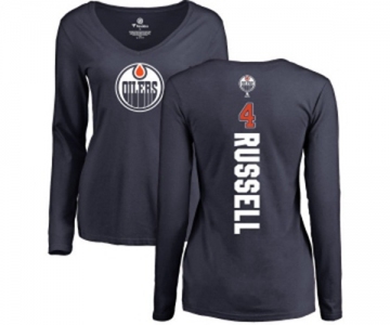 NHL Women Adidas Edmonton Oilers #4 Kris Russell Navy Blue Backer Slim Fit Long Sleeve T-Shirt