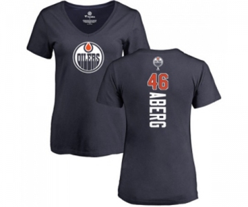 NHL Women Adidas Edmonton Oilers #46 Pontus Aberg Navy Blue Backer Slim Fit V-Neck T-Shirt