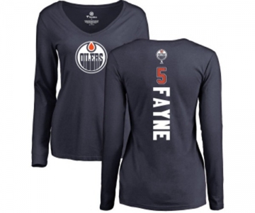 NHL Women Adidas Edmonton Oilers #5 Mark Fayne Navy Blue Backer Slim Fit Long Sleeve T-Shirt