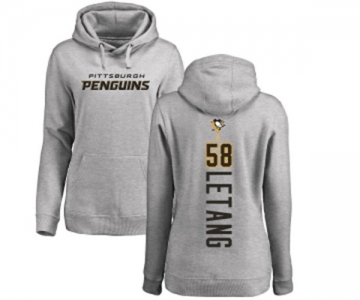 NHL Women Adidas Pittsburgh Penguins #58 Kris Letang Ash Backer Pullover Hoodie