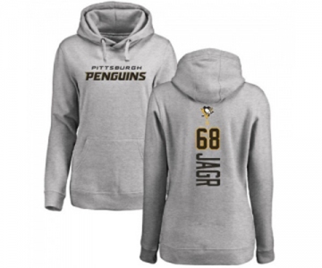 NHL Women Adidas Pittsburgh Penguins #68 Jaromir Jagr Ash Backer Pullover Hoodie