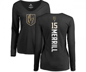 NHL Women Adidas Vegas Golden Knights #15 Jon Merrill Black Backer Slim Fit Long Sleeve T-Shirt