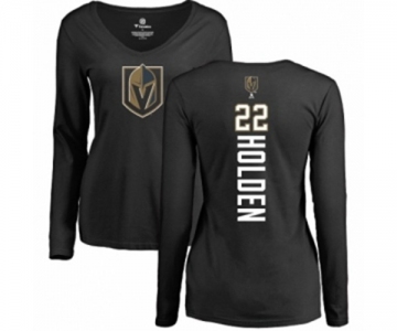 NHL Women Adidas Vegas Golden Knights #22 Nick Holden Black Backer Slim Fit Long Sleeve T-Shirt
