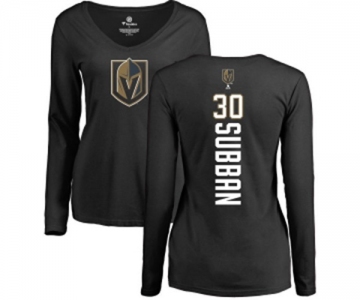 NHL Women Adidas Vegas Golden Knights #30 Malcolm Subban Black Backer Slim Fit Long Sleeve T-Shirt