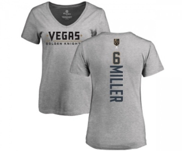 NHL Women Adidas Vegas Golden Knights #6 Colin Miller Gray Backer Slim Fit V-Neck T-Shirt